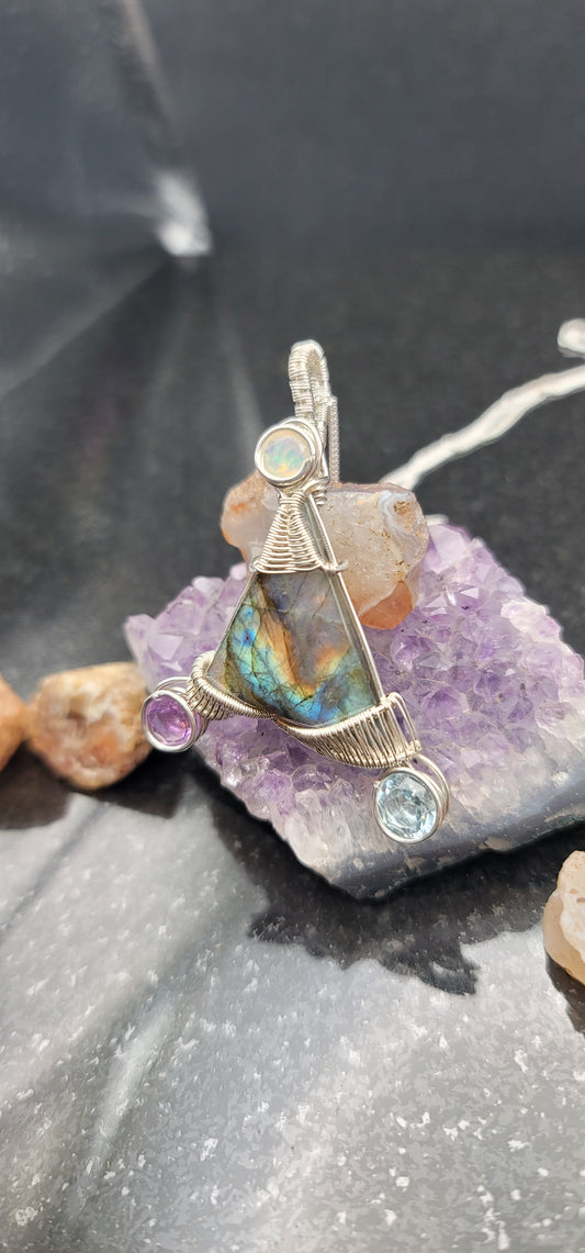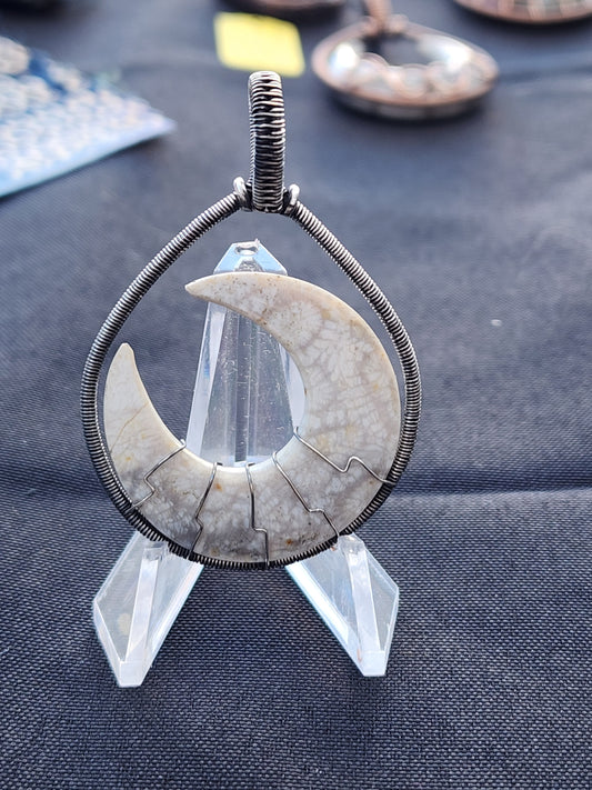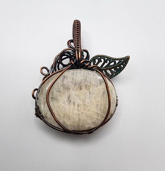 Belomorite (Russian Moonstone) Pumpkin Pendant